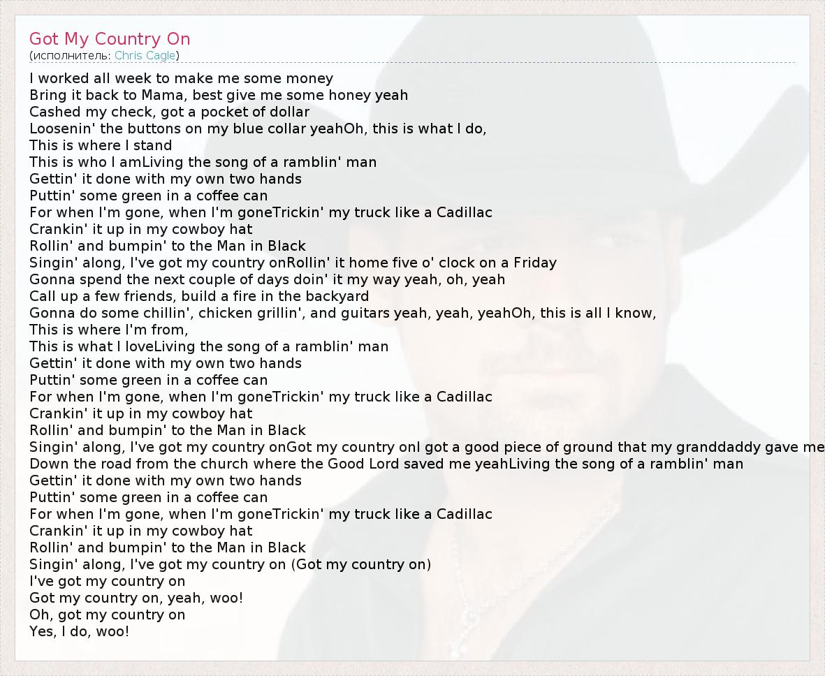 А как ты думаешь, о чем песня "Got My Country On" ?