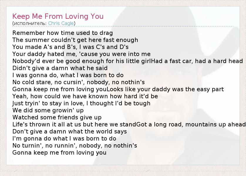 ГлавнаяИсполнителиChris CagleKeep Me From Loving You