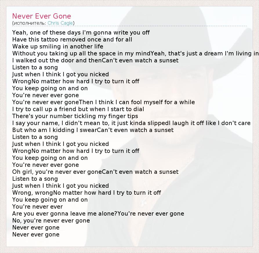 А как ты думаешь, о чем песня "Never Ever Gone" ?