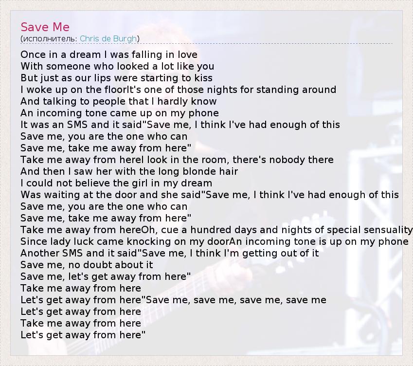 А как ты думаешь, о чем песня "Save Me" ?