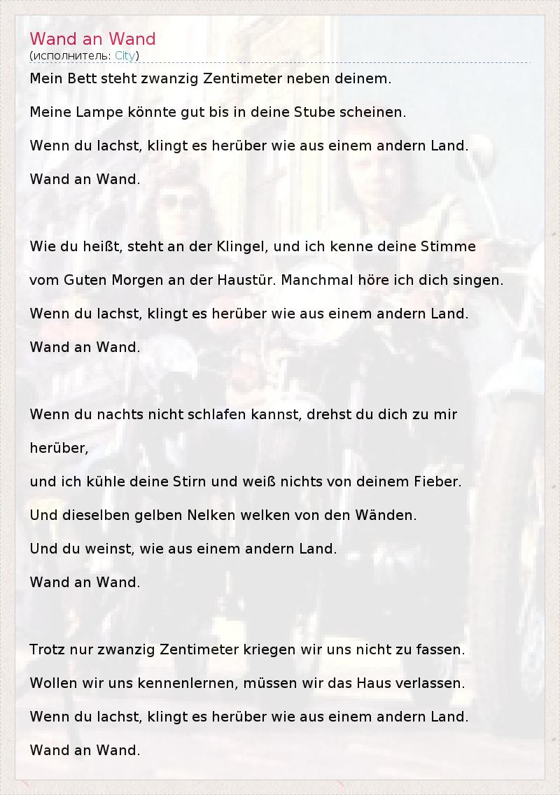 А как ты думаешь, о чем песня "Wand an Wand" ?
