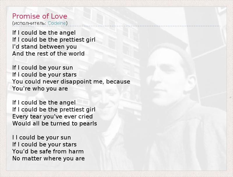 А как ты думаешь, о чем песня "Promise of Love" ?