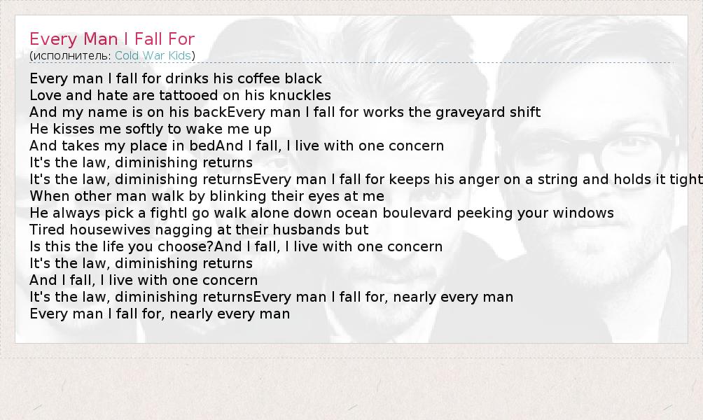 А как ты думаешь, о чем песня "Every Man I Fall For" ?