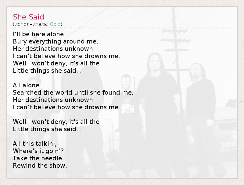 А как ты думаешь, о чем песня "She Said" ?