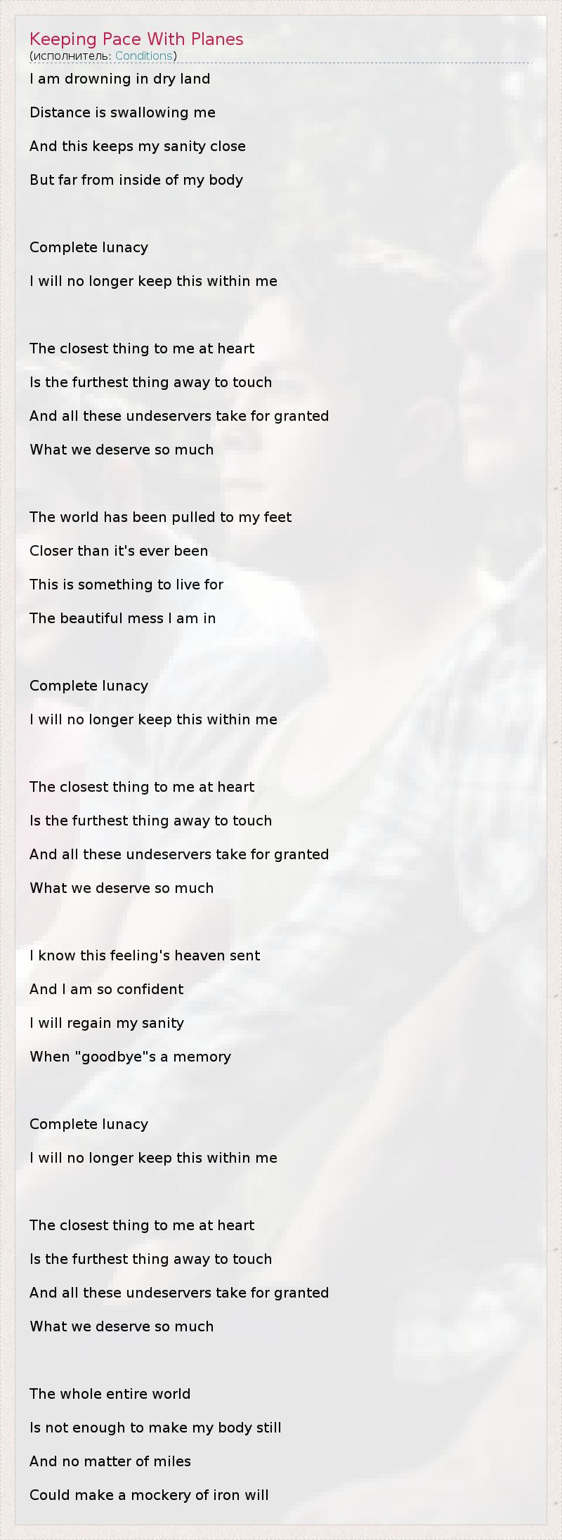 ГлавнаяИсполнителиConditionsKeeping Pace With Planes