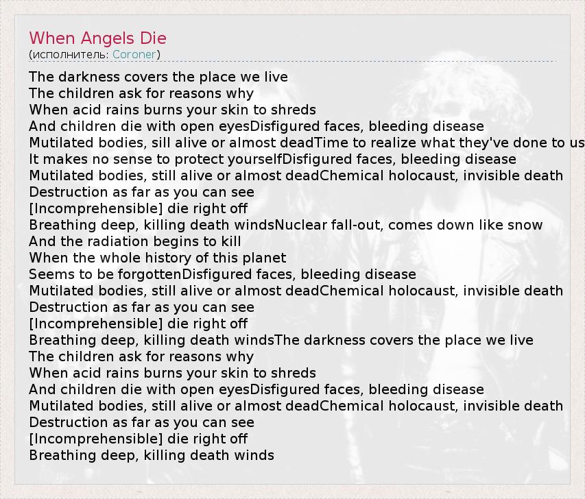 А как ты думаешь, о чем песня "When Angels Die" ?