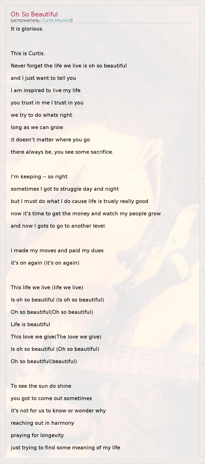 А как ты думаешь, о чем песня "Oh So Beautiful" ?