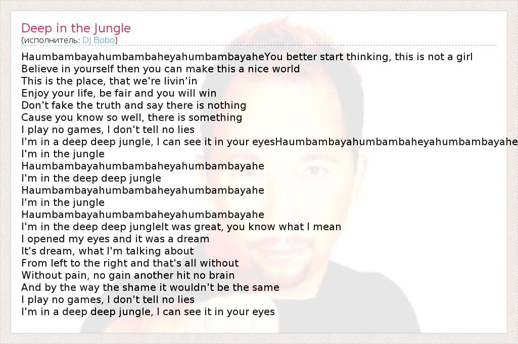I'm in a deep deep jungle, I can see it in your eyesHaumbambayahumbambaheyahumbambayahe