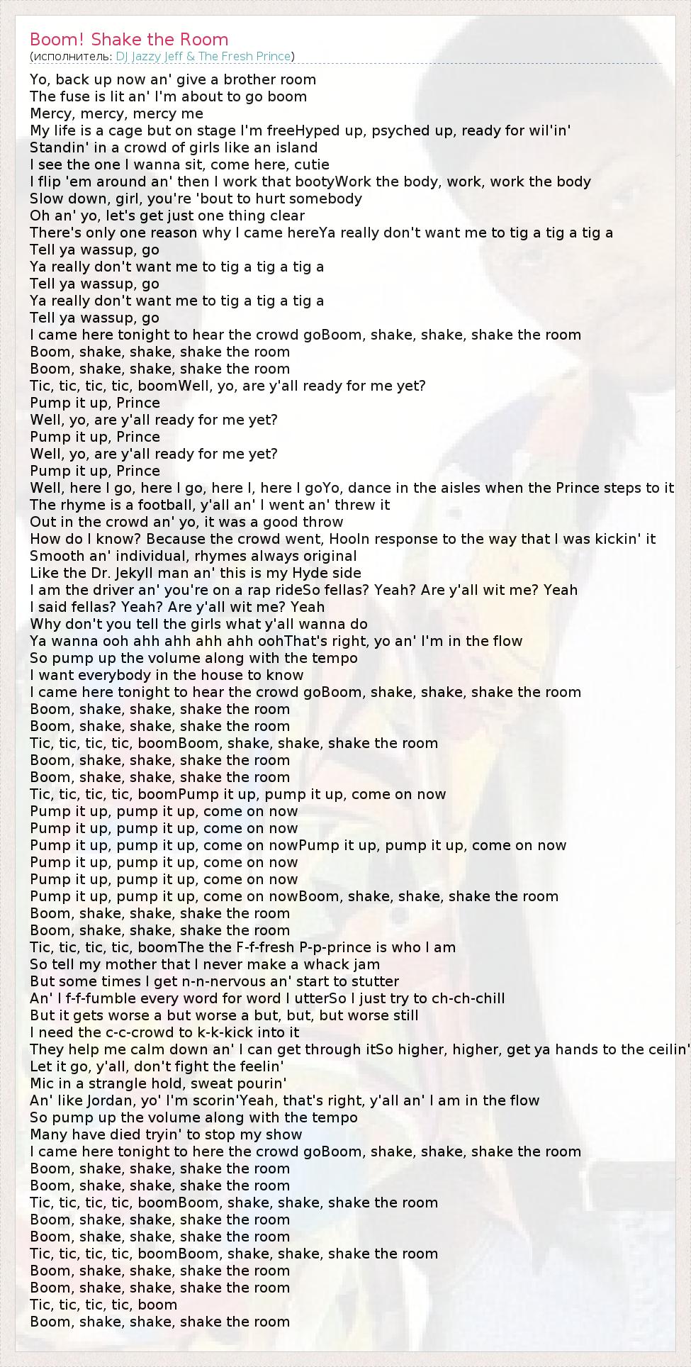 А как ты думаешь, о чем песня "Boom! Shake the Room" ?
