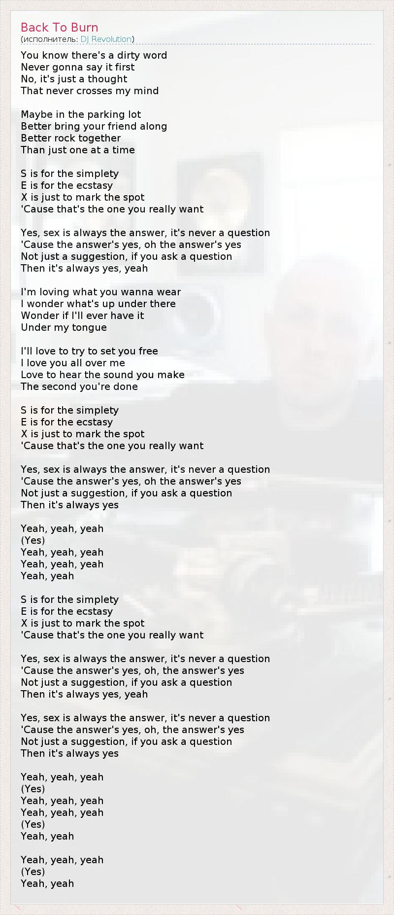 А как ты думаешь, о чем песня "Back To Burn" ?