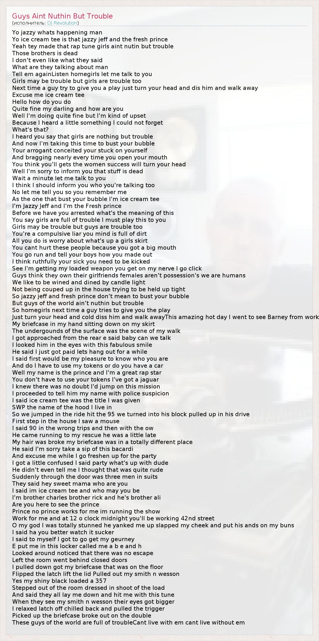 А как ты думаешь, о чем песня "Guys Aint Nuthin But Trouble" ?
