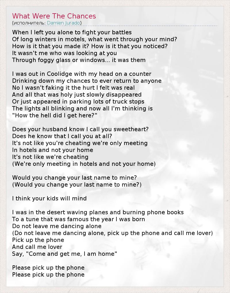 А как ты думаешь, о чем песня "What Were The Chances" ?