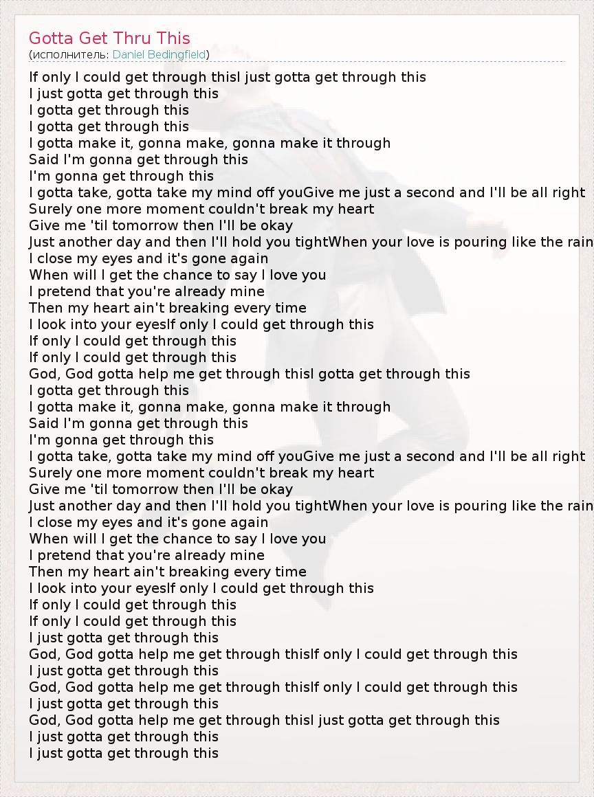 А как ты думаешь, о чем песня "Gotta Get Thru This" ?