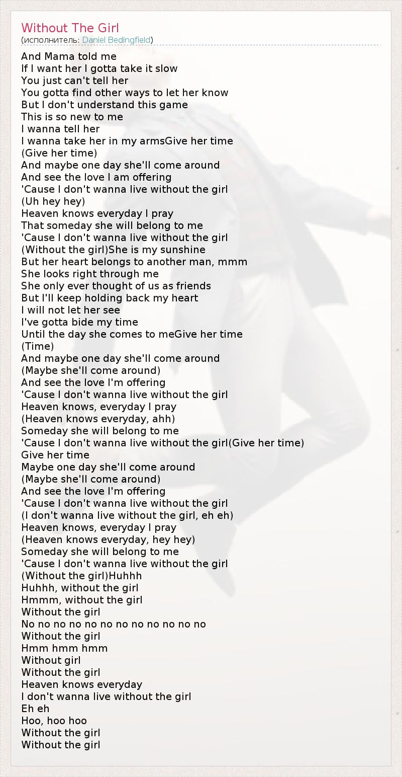 А как ты думаешь, о чем песня "Without The Girl" ?