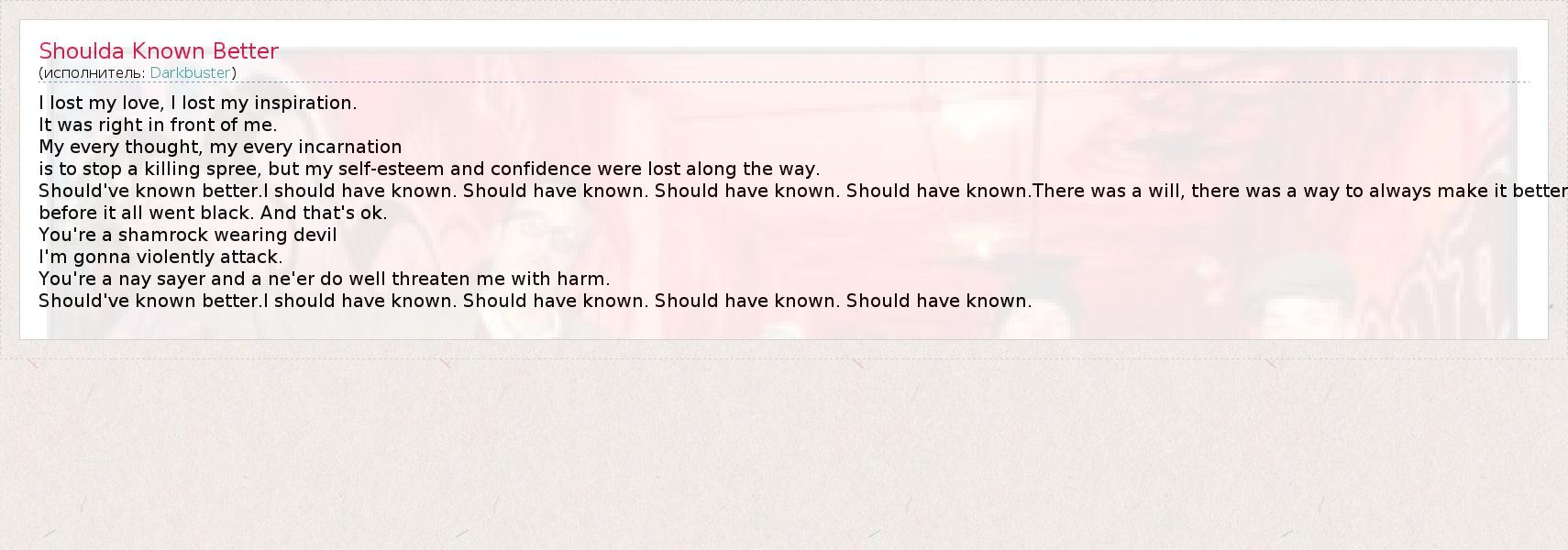Should've known better.I should have known. Should have known. Should have known. Should have known.