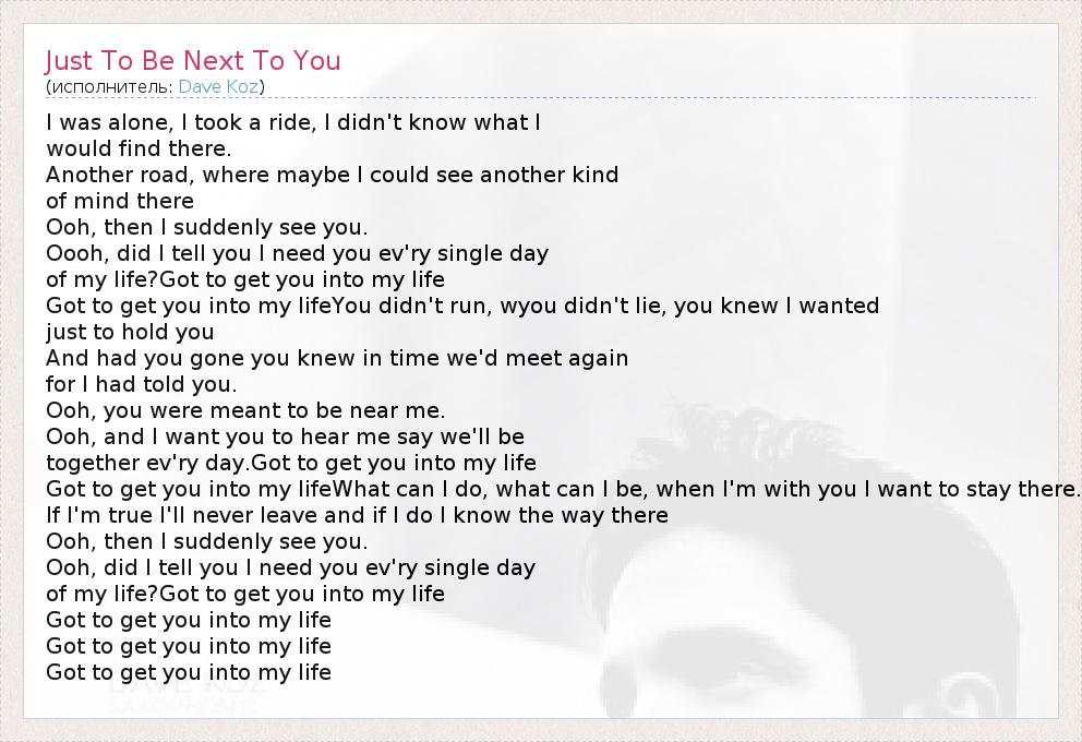 А как ты думаешь, о чем песня "Just To Be Next To You" ?