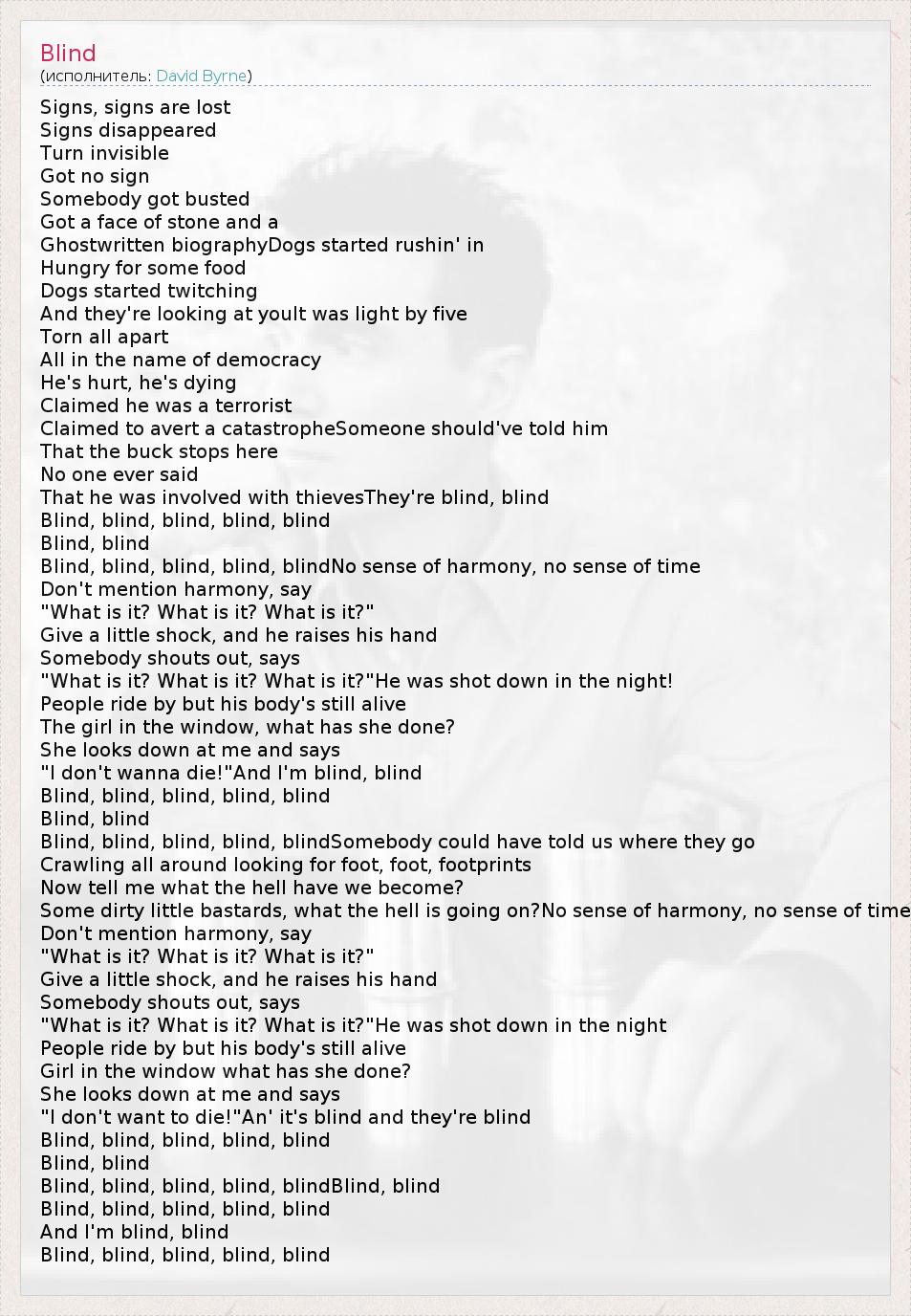 Blind, blind, blind, blind, blindSomebody could have told us where they go