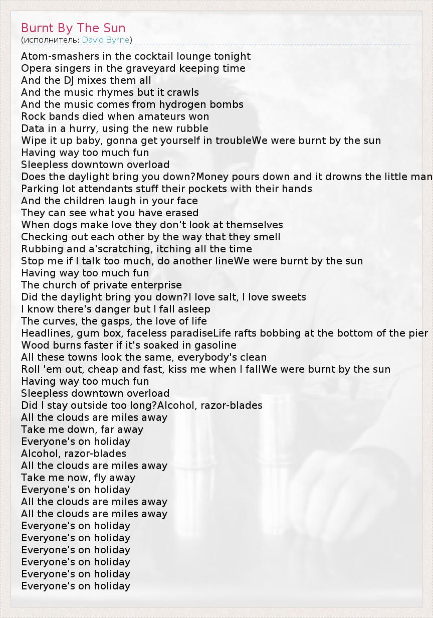 А как ты думаешь, о чем песня "Burnt By The Sun" ?