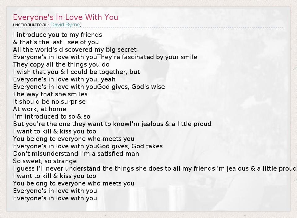 А как ты думаешь, о чем песня "Everyone's In Love With You" ?