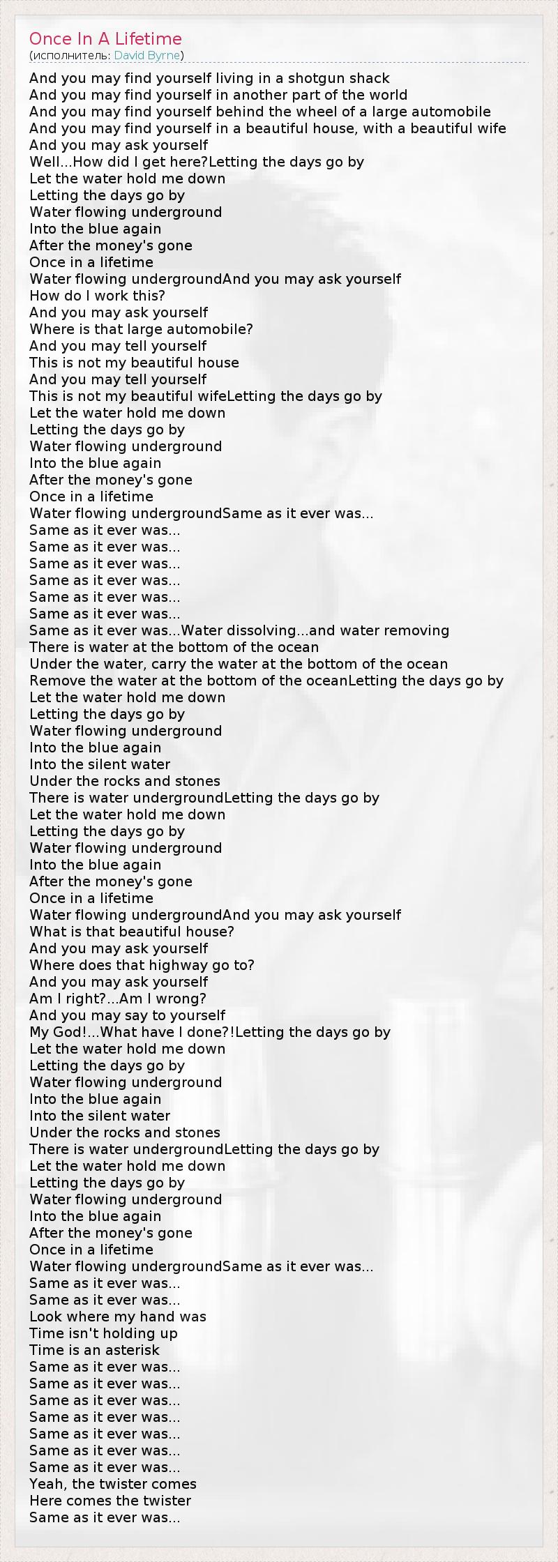 А как ты думаешь, о чем песня "Once In A Lifetime" ?
