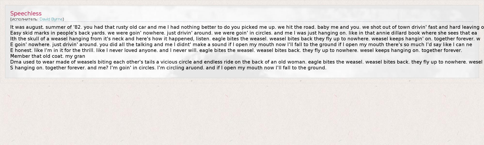 E goin' nowhere. just drivin' around. you did all the talking and me I didnt' make a sound if I open my mouth now I'll fall to the ground if I open my mouth there's so much I'd say like I can ne