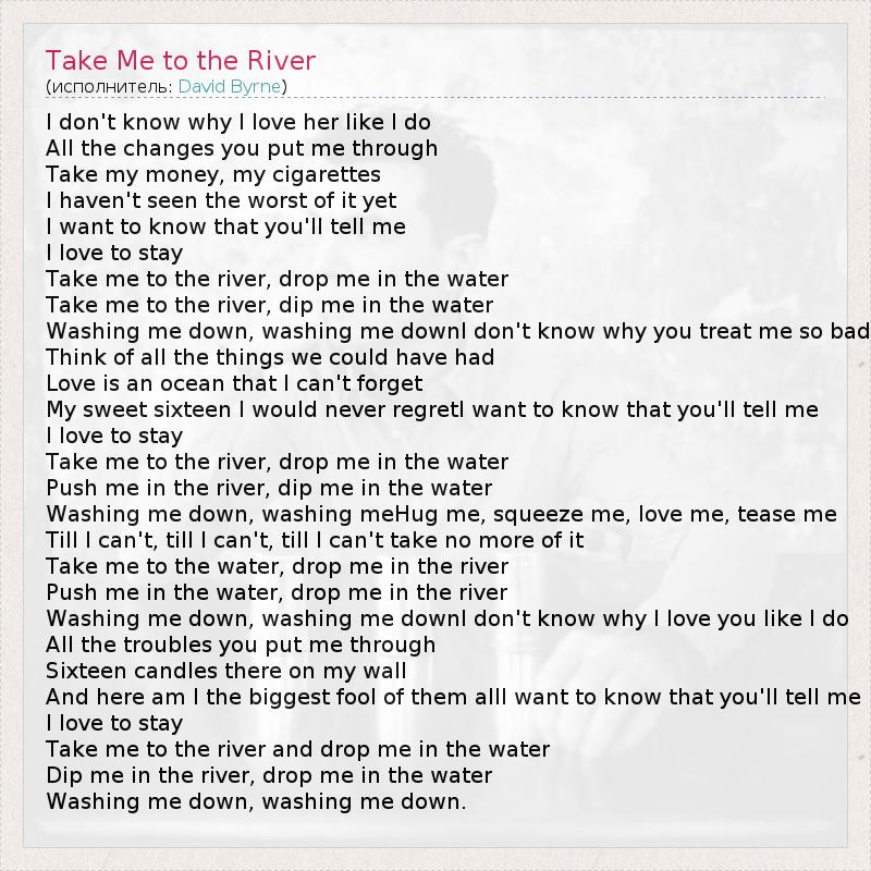 А как ты думаешь, о чем песня "Take Me to the River" ?
