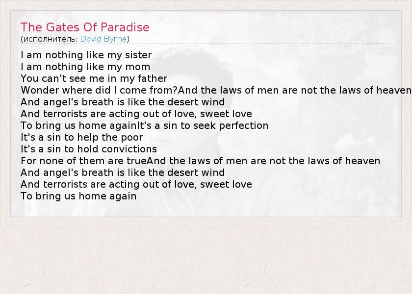 А как ты думаешь, о чем песня "The Gates Of Paradise" ?