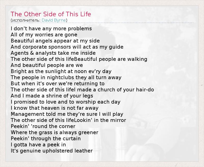 ГлавнаяИсполнителиDavid ByrneThe Other Side of This Life