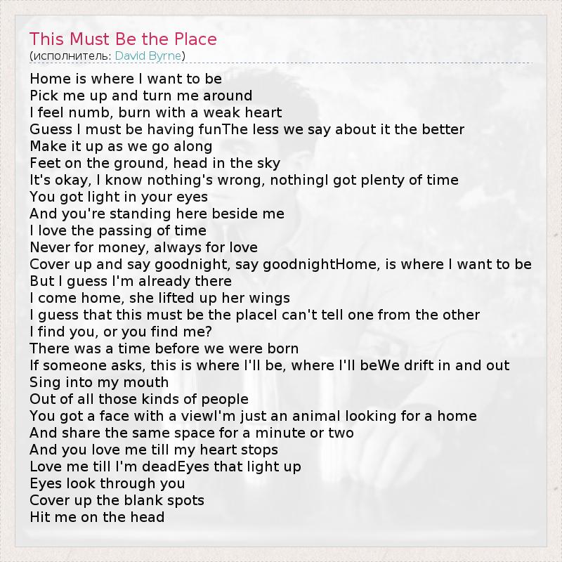 А как ты думаешь, о чем песня "This Must Be the Place" ?
