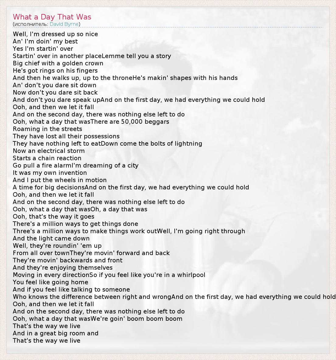 А как ты думаешь, о чем песня "What a Day That Was" ?
