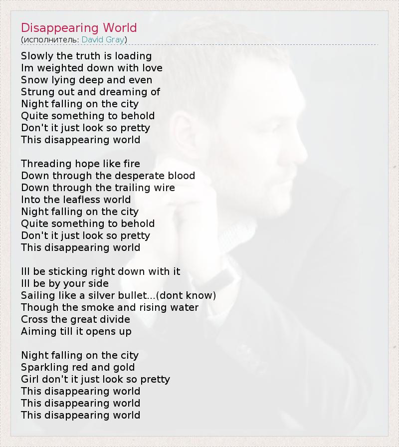 А как ты думаешь, о чем песня "Disappearing World" ?