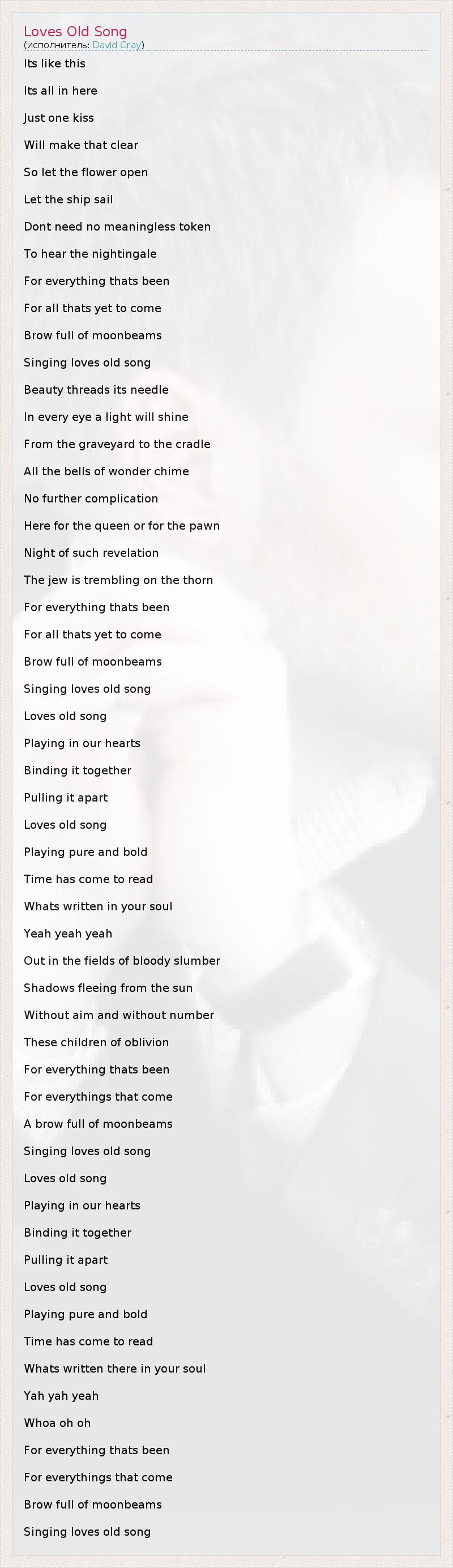 А как ты думаешь, о чем песня "Loves Old Song" ?