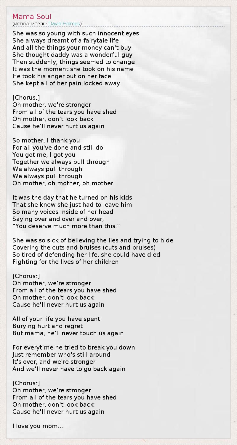 А как ты думаешь, о чем песня "Mama Soul" ?
