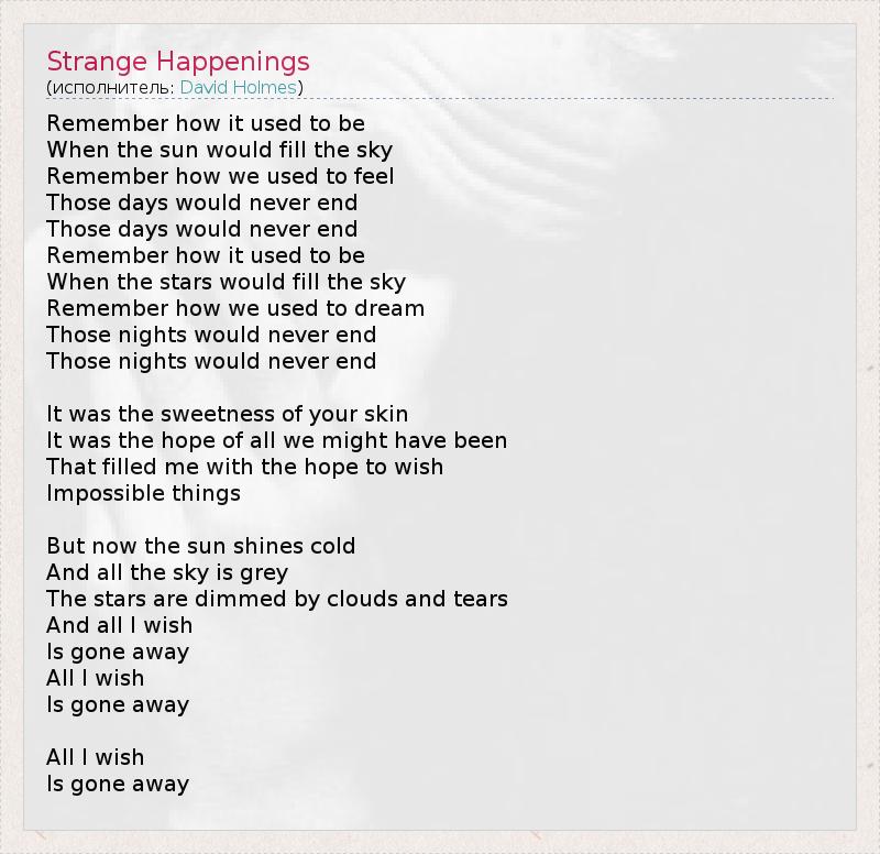 А как ты думаешь, о чем песня "Strange Happenings" ?