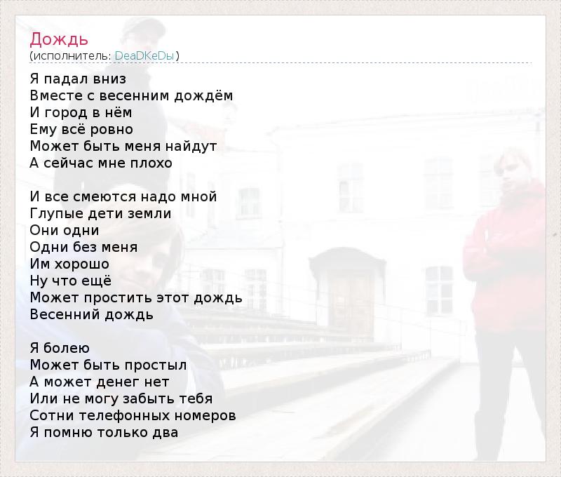 Это интересно:DEADKEDЫ ★ OFFICIAL COMMUNITY vk Первая репетиция группы DeaDKeDы состоялась 22 марта 2000 года. Ранней весной барабанщик Кирилл расклеивал объявления на стенах музыкальных магазинов. Он искал единомышленников. Единомышленники не заставили себя ждать – ими оказались бородатые и амбициозные студенты ВУЗов, уроженцы далёкого северного городка Полярные Зори, Тёма (гитара,... продолжение