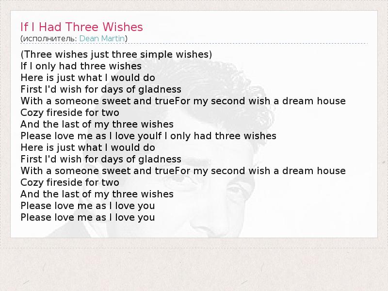 А как ты думаешь, о чем песня "If I Had Three Wishes" ?