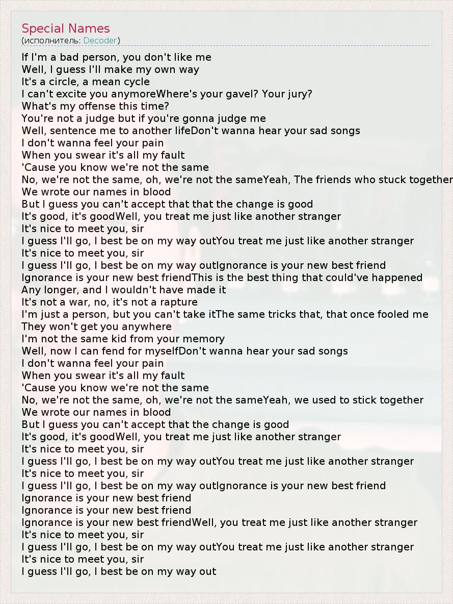 Ignorance is your new best friendWell, you treat me just like another stranger