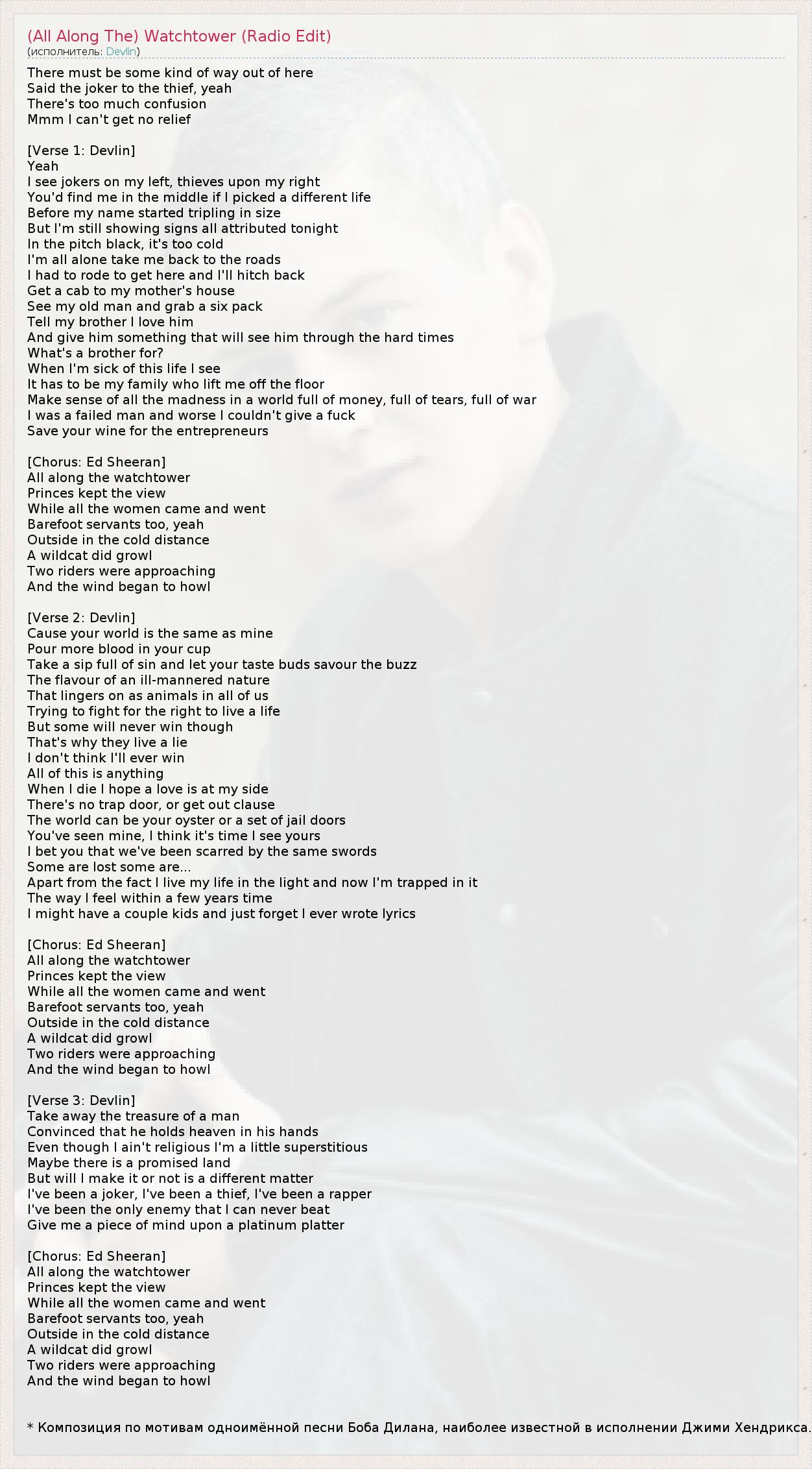 ГлавнаяИсполнителиDevlin(All Along The) Watchtower (Radio Edit)