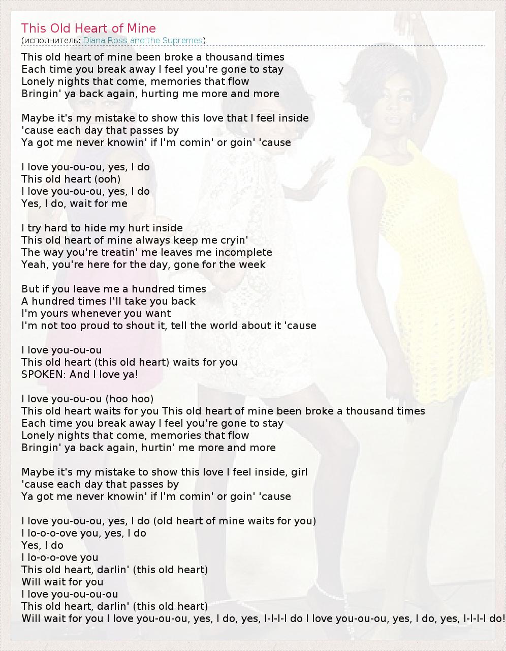 А как ты думаешь, о чем песня "This Old Heart of Mine" ?