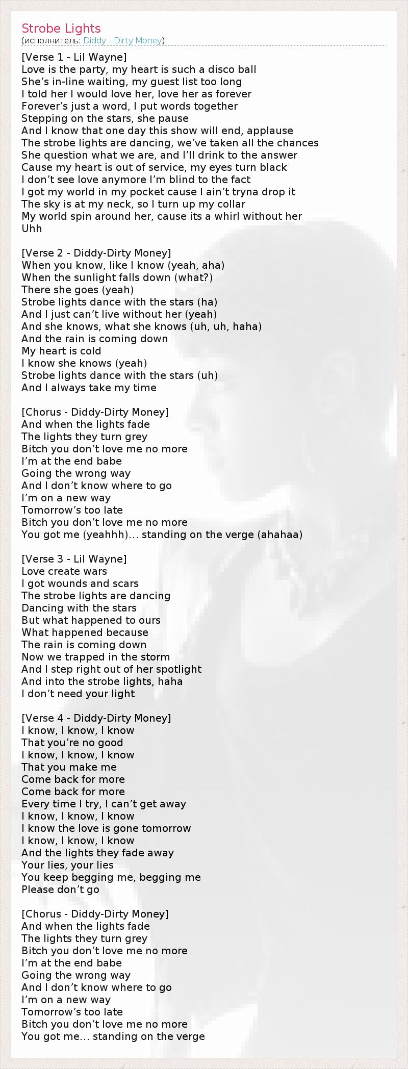 А как ты думаешь, о чем песня "Strobe Lights" ?