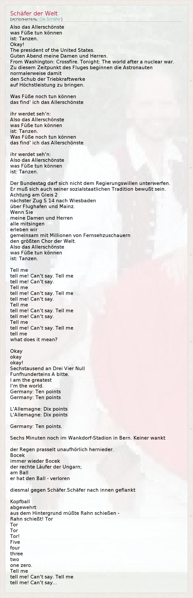 А как ты думаешь, о чем песня "Schäfer der Welt" ?