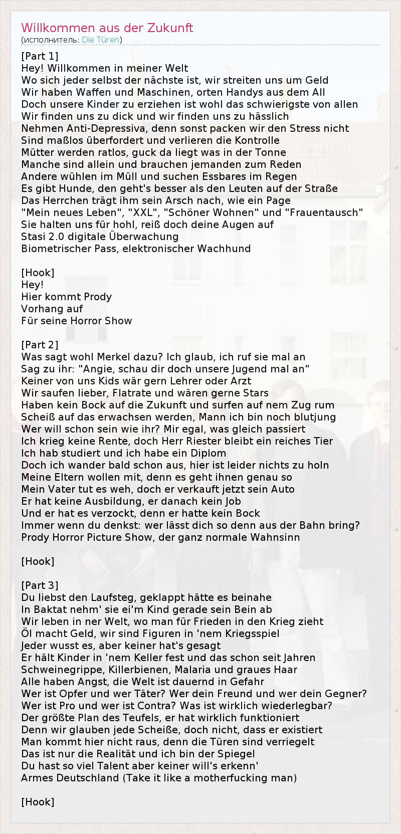 ГлавнаяИсполнителиDie TürenWillkommen aus der Zukunft