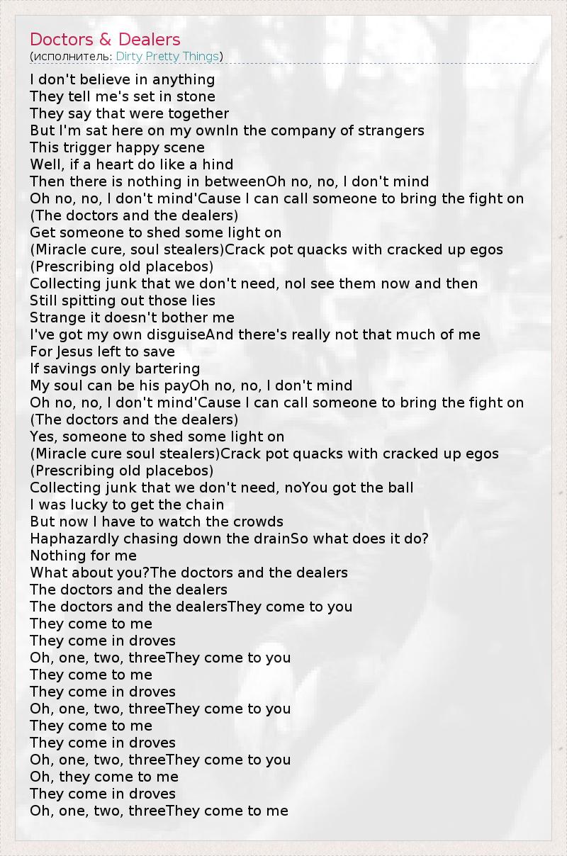 А как ты думаешь, о чем песня "Doctors & Dealers" ?