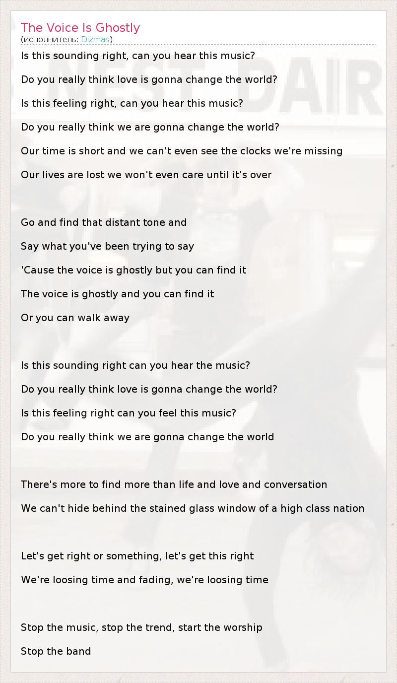 А как ты думаешь, о чем песня "The Voice Is Ghostly" ?
