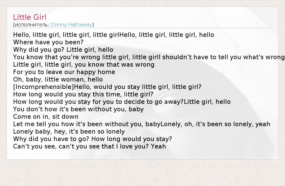 А как ты думаешь, о чем песня "Little Girl" ?