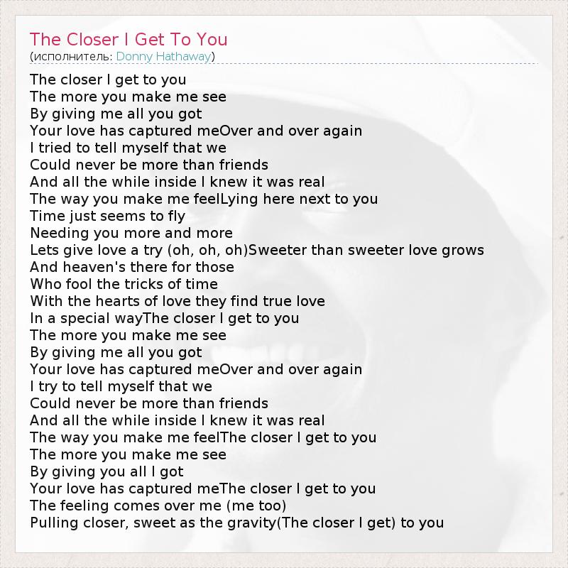А как ты думаешь, о чем песня "The Closer I Get To You" ?