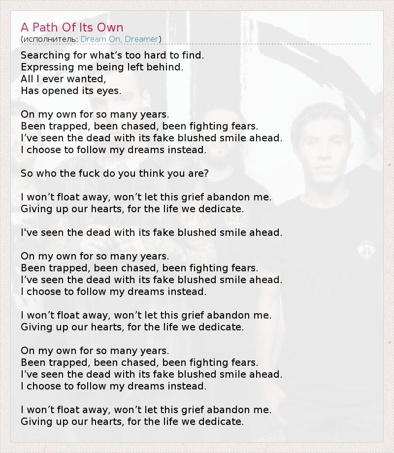 А как ты думаешь, о чем песня "A Path Of Its Own" ?