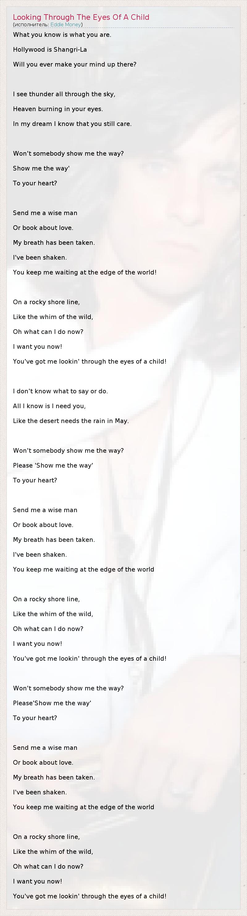ГлавнаяИсполнителиEddie MoneyLooking Through The Eyes Of A Child
