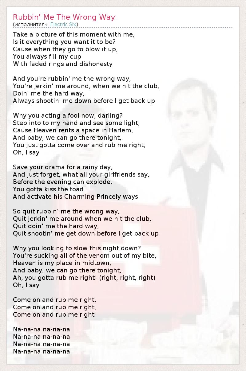 А как ты думаешь, о чем песня "Rubbin' Me The Wrong Way" ?