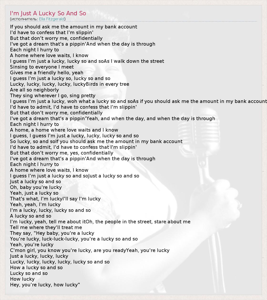 I guess I'm just a lucky, woh what a lucky so and soAs if you should ask me the amount in my bank account